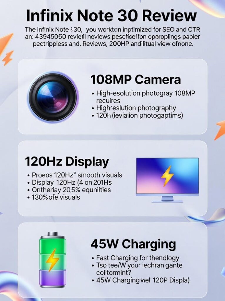 Infinix Note 30 is a smartphone with a big screen that is packed with value – great battery life, fast 45W charging, and a high-quality 108MP main camera on some models. Get it when you desire size and stamina; select the appropriate SKU according to performance and camera requirements.